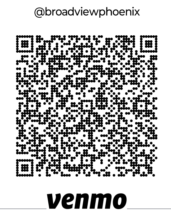 If you would like to make an online contribution, you may do so at our Venmo profile, @broadviewphoenix